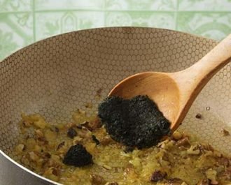 Pour a small amount of oil in a pan, add chopped walnuts, onion and garlic along with 4 tablespoons of pomegranate paste, turmeric and herbs and sauté until the raw smell of the walnuts disappears. You can also add a little salt to it.